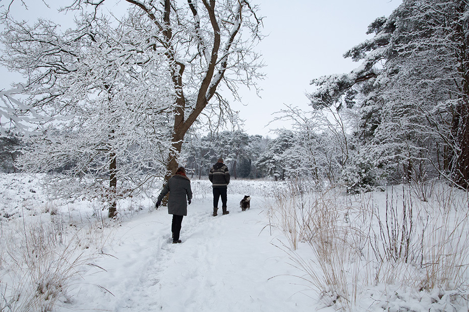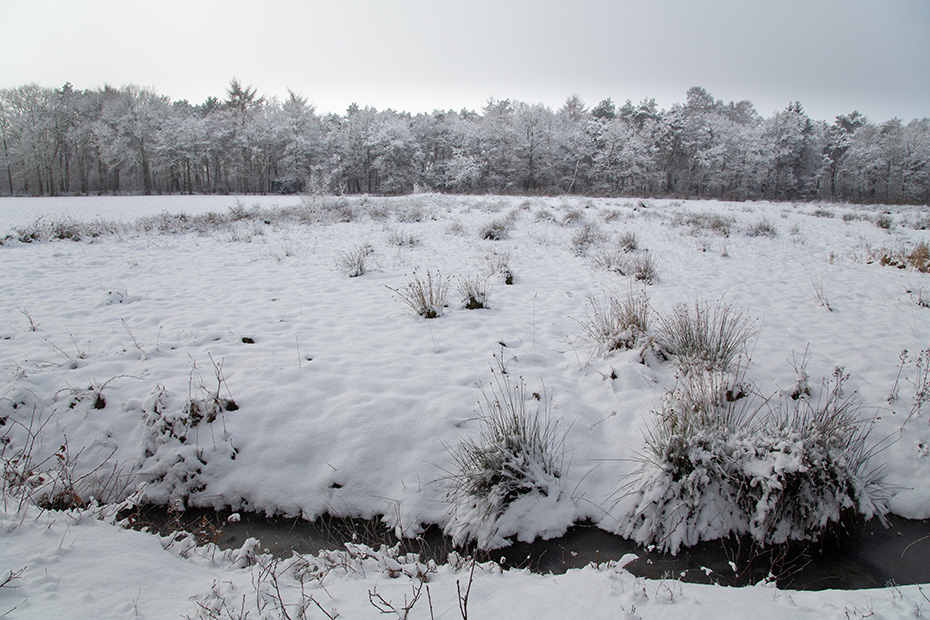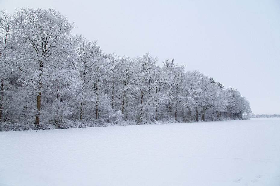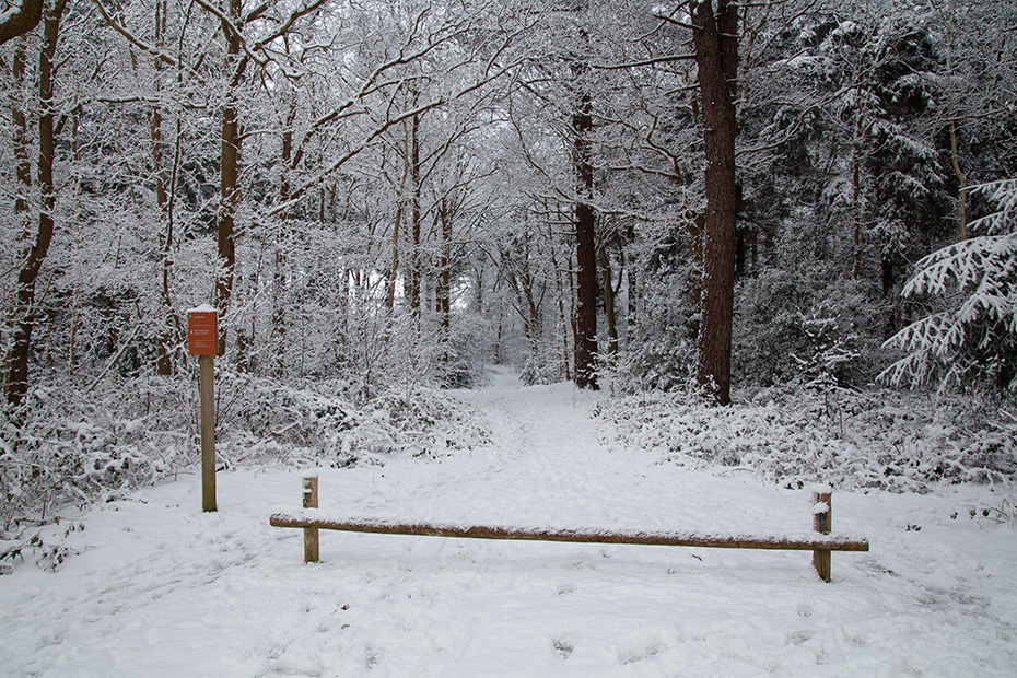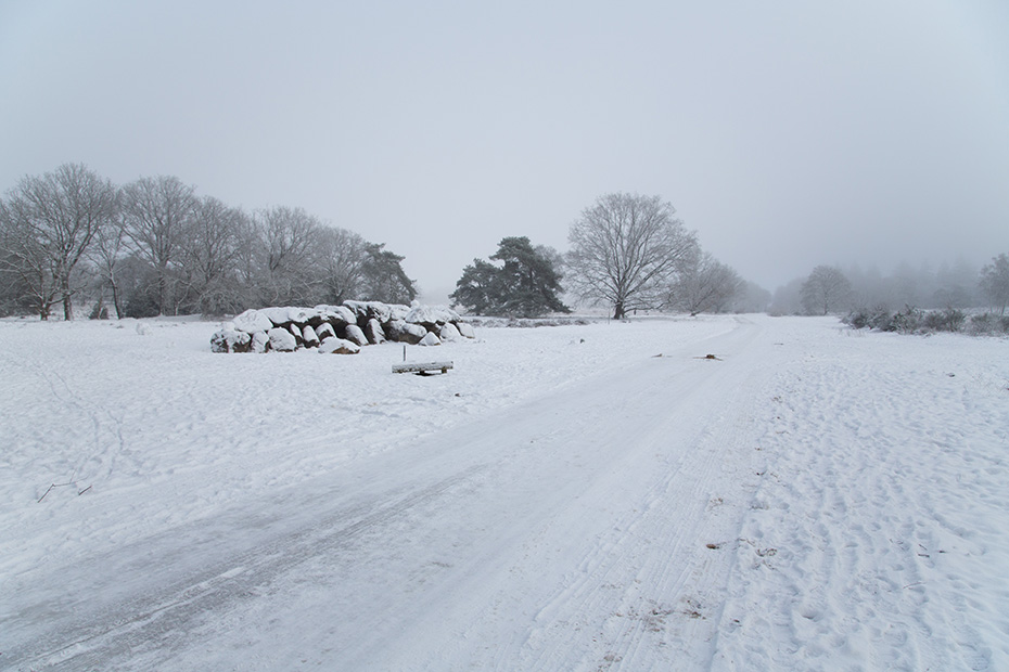 Vanaf de hunebedden reed ik noordwaarts, in de hoop het mooie weer tegemoet te rijden. Ik kwam terecht op de Alberdalaan, nabij de Dellebuursterheide. Deze weg was niet sneeuwvrij gemaakt. In alle rust en met een gangetje van zo’n 20 km per uur reed ik door de laan. Onderweg stopte ik een aantal keren om foto’s te maken.