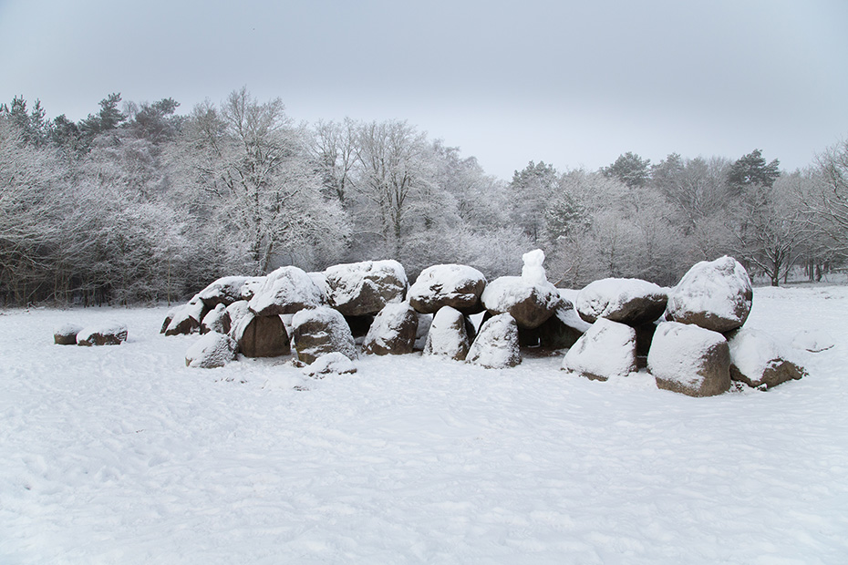 Op een dag kon ik mijn werkdag zo indelen dat ik tussendoor een paar uurtjes op pad kon met mijn camera’s. In de plaats waar ik werkte was het prachtig weer: de zon scheen volop en de lucht was strakblauw. Vol goede moed reed ik naar huis om mij om te kleden en mijn fotospullen te pakken. Helaas bleek het bij ons mistig te zijn. Toch liet ik me daar niet door weerhouden en ging ik op stap. Als eerste bestemming koos ik voor de hunebedden bij Havelte.