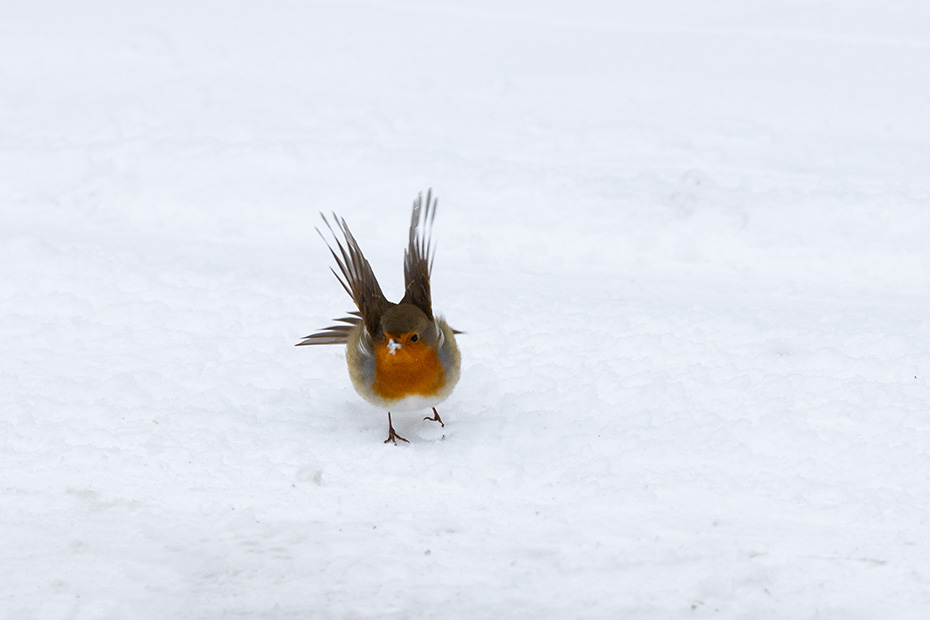 Via een kleine omweg kwam ik uit bij een stukje bos in de Tjongervallei. Daar lag juist veel sneeuw, wat het landschap een bijna feeërieke uitstraling gaf. Ik besloot er een wandeling te maken. Opvallend was dat de roodborstjes helemaal niet schuw waren; ze kwamen zelfs nieuwsgierig naar me toe.