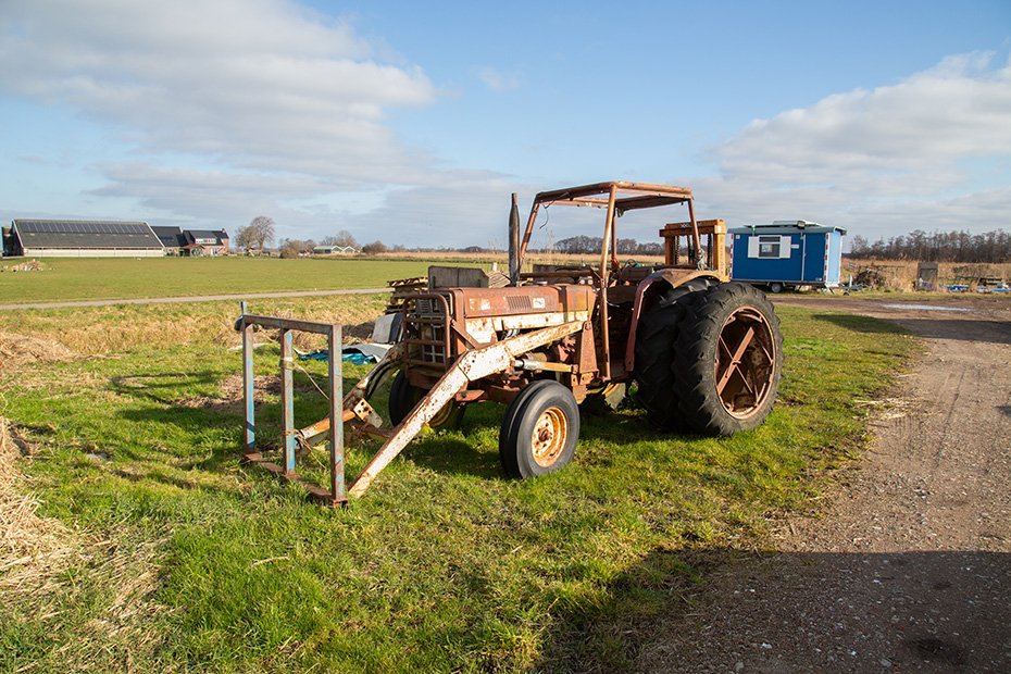 Een half uur later parkeerde ik de auto op de loswal naast een oude tractor. Zie Google Maps. Ik belde Klaas Jan om te laten weten dat ik was gearriveerd en binnen vijf minuten kwam hij samen met zijn dochter aanvaren. Ik installeerde me voor in de boot op het bankje en zo had ik naar alle kanten mooi zicht.
