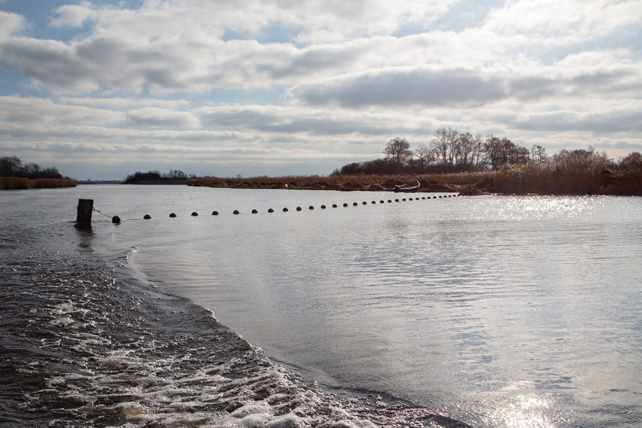 We voeren over het Ettenlandsche Kanaal, langs andere rietsnijders. In westelijke richting zagen we in de verte het watergemaal A.F. Stroink staan, een vertrouwd herkenningspunt in deze ogenschijnlijk verlaten wereld.