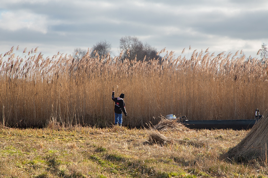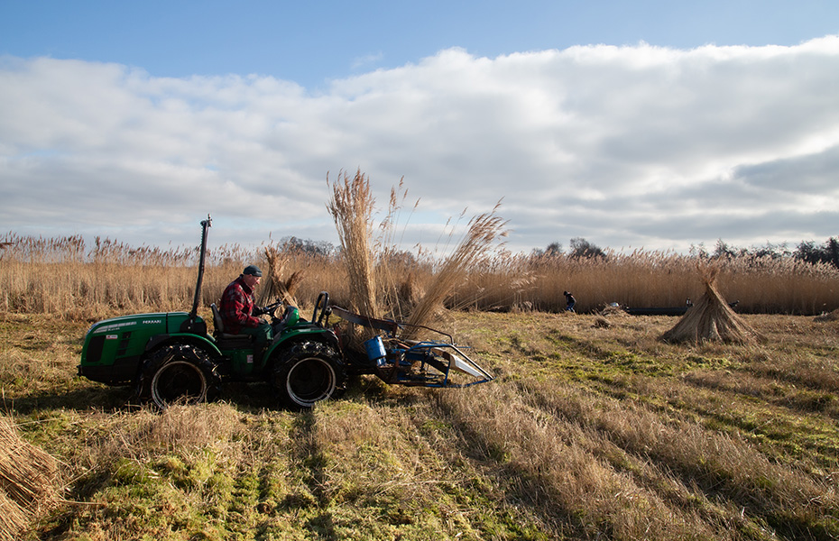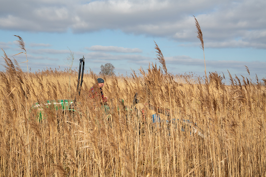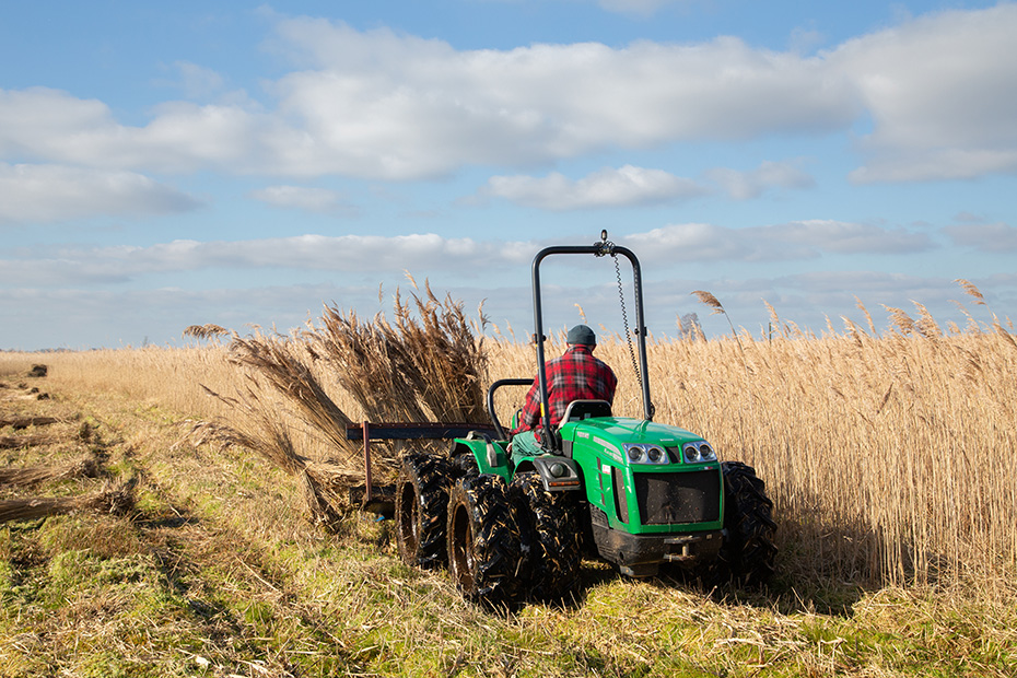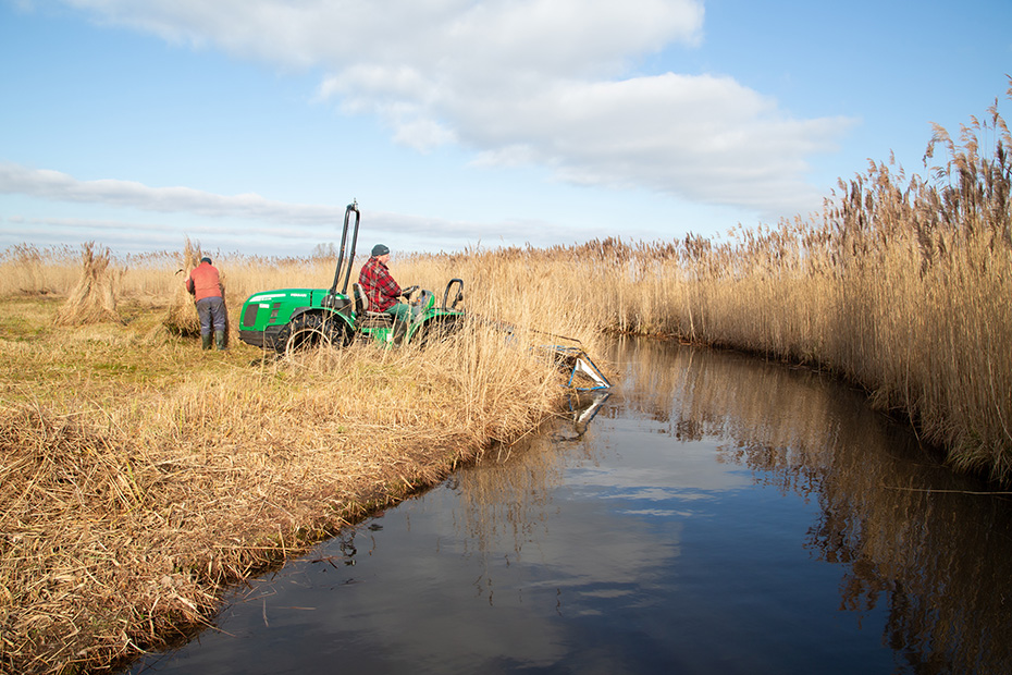 Jan bediende de rietmaaier. Het lijkt misschien eenvoudig werk, maar dat is het allerminst. Hij moet constant scherp blijven om niet vast te lopen in het drassige terrein of per ongeluk te ver door te rijden en in het water te belanden.