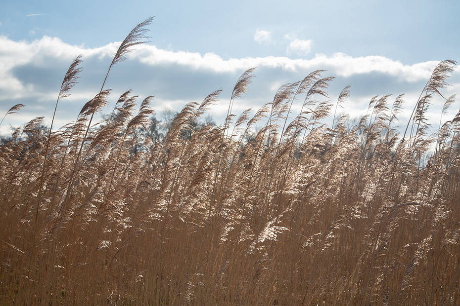 Ik vind het altijd bijzonder om te zien hoe de kleur van het riet verandert, afhankelijk van hoe het zonlicht erop valt. De vierde foto is gemaakt in tegenlicht, waardoor de rietpluimen een zilverkleurige glans krijgen.