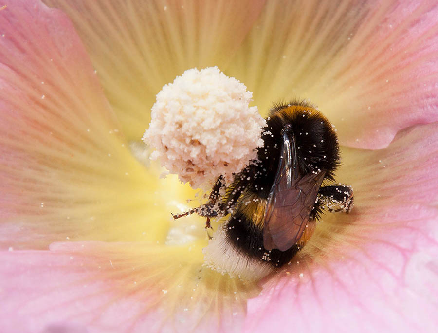 Hommels zijn bijen, dat weten de meeste mensen niet. Ik wist het ook niet totdat ik er meer las op deze site. De hommels zijn kanjers in het bestuiven. Onze stokrozen zijn altijd erg in trek bij de hommels.