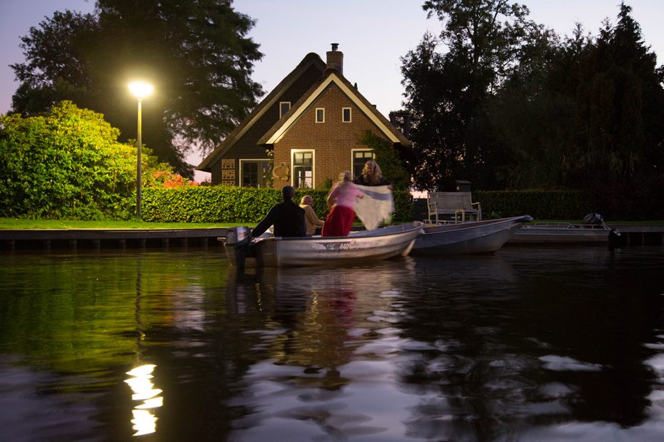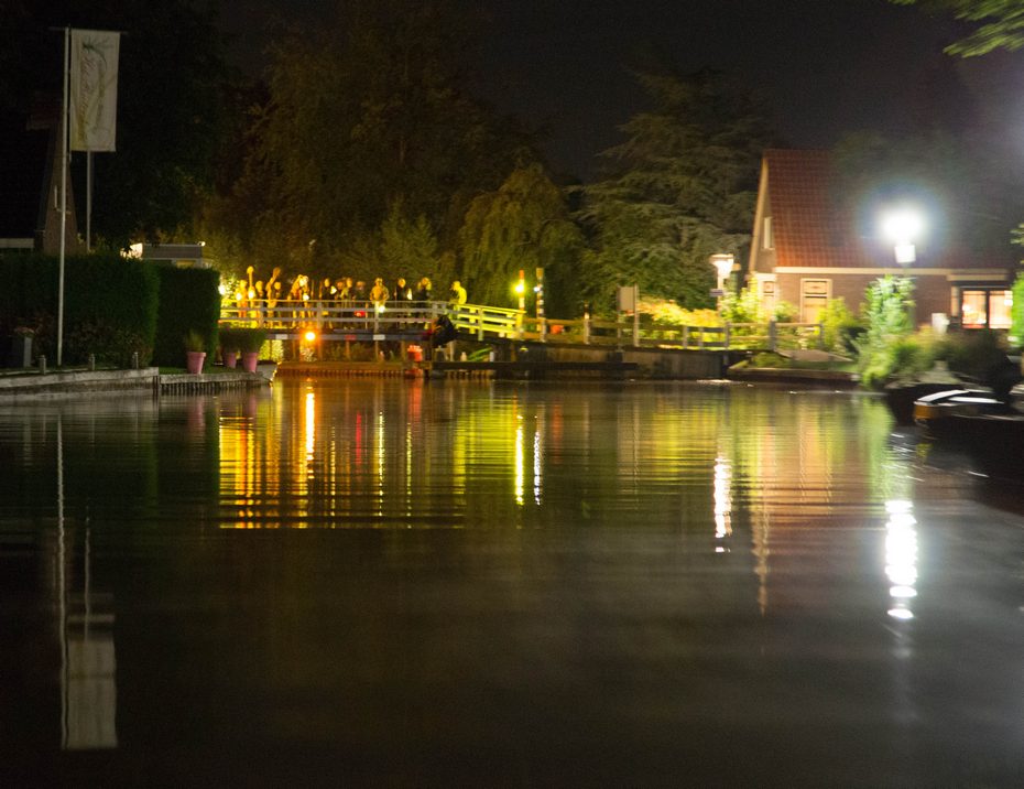 We kwamen aan bij een bruggetje. De brugwachter stond al op ons te wachten. We verlieten de Kalenbergergracht en sloegen linksaf het Meentegat op. De zon ging onder. Het werd donker, heel donker. Lichtvervuiling kent men daar niet. Het was een kraakheldere avond en ik keek verrukt naar de sterrenhemel. Het gebeurt niet vaak dat men in Nederland zoveel sterren ziet.
