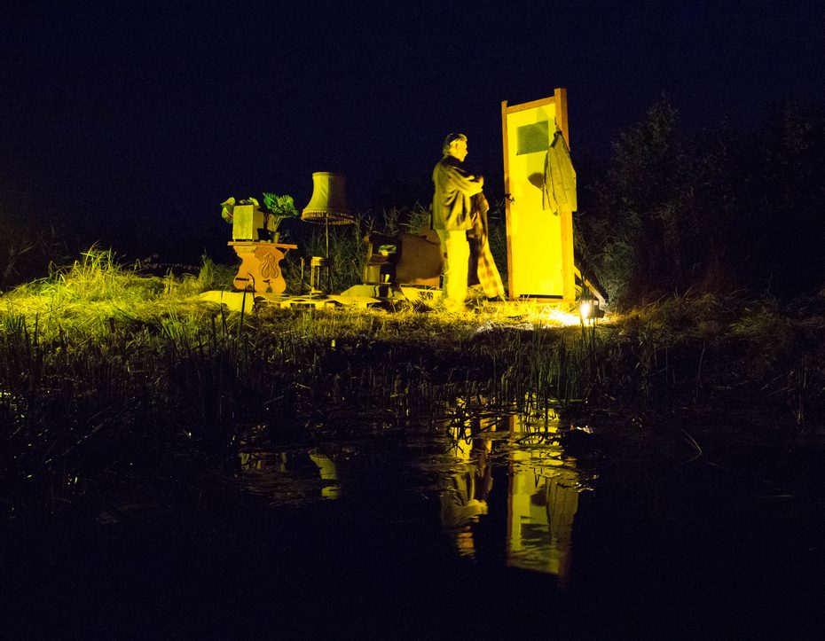 Het was spannend om daar in het pikkedonker te varen, er was immers een moord gepleegd en de moordenaar was nog op vrije voeten. Op de oever speelde zich weer een scène af.