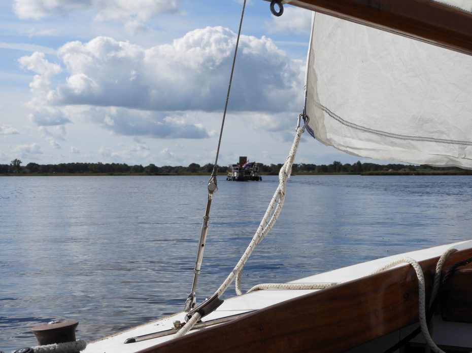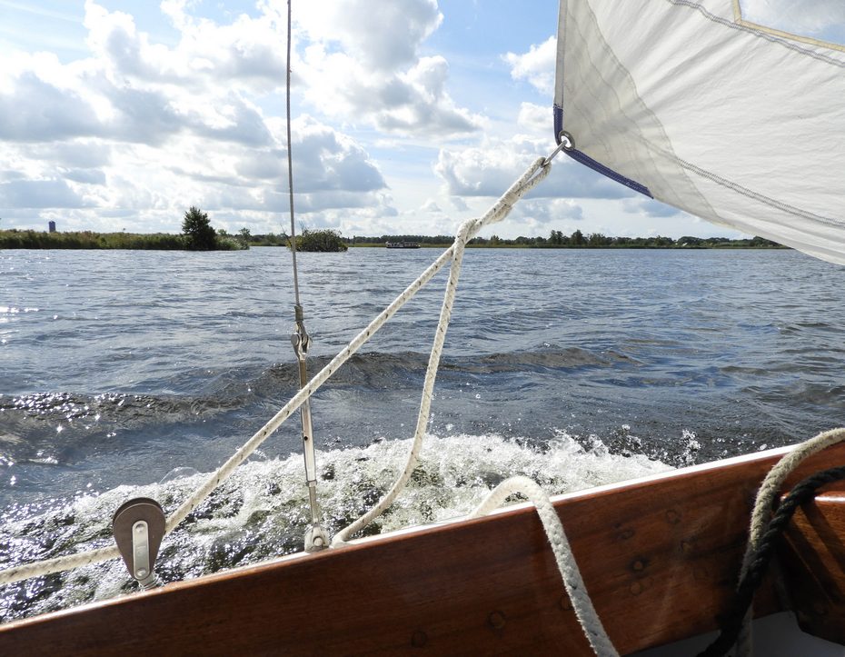 We lieten de kibbelende vrouwen achter ons en voeren verder. We kwamen langs het huis van dichter JC Bloem. Bloem zat buiten te schrijven. Speciaal voor ons las hij een prachtig gedicht voor. Deze scènes speelden zich aan de rechterkant van de boot terwijl ik aan de betrokken zat. Het zat er dus niet in om dit tafereel vast te leggen.
