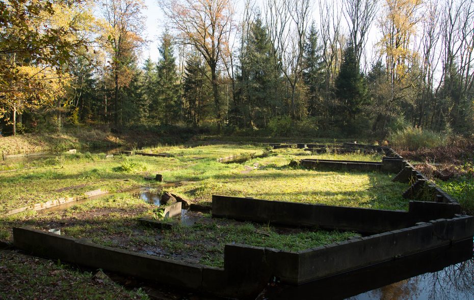 De natuur heeft langzaam weer bezit genomen van de waterloopkundige modellen in het bos.
