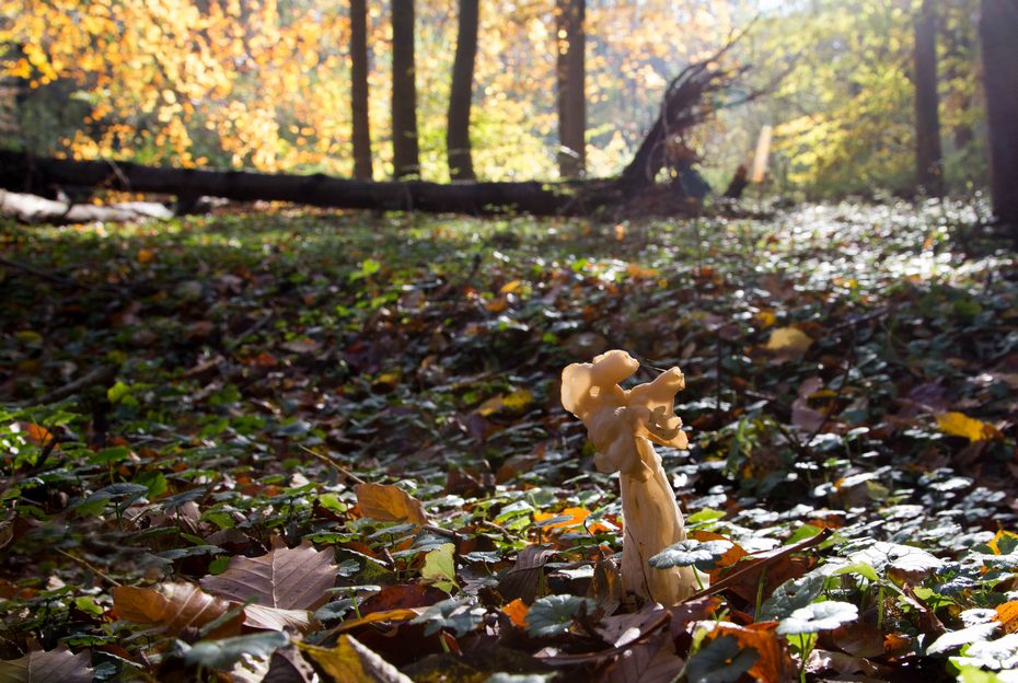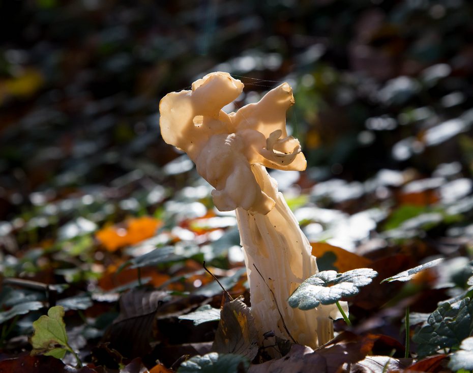Op weg daar naartoe wees mijn vriendin mij op een zwam. Ze wist zelfs de naam van deze zwam te vertellen. Het was maar goed dat ze mij erop wees, want anders was ik er zo aan voorbij gelopen. Het was een witte kluifzwam.