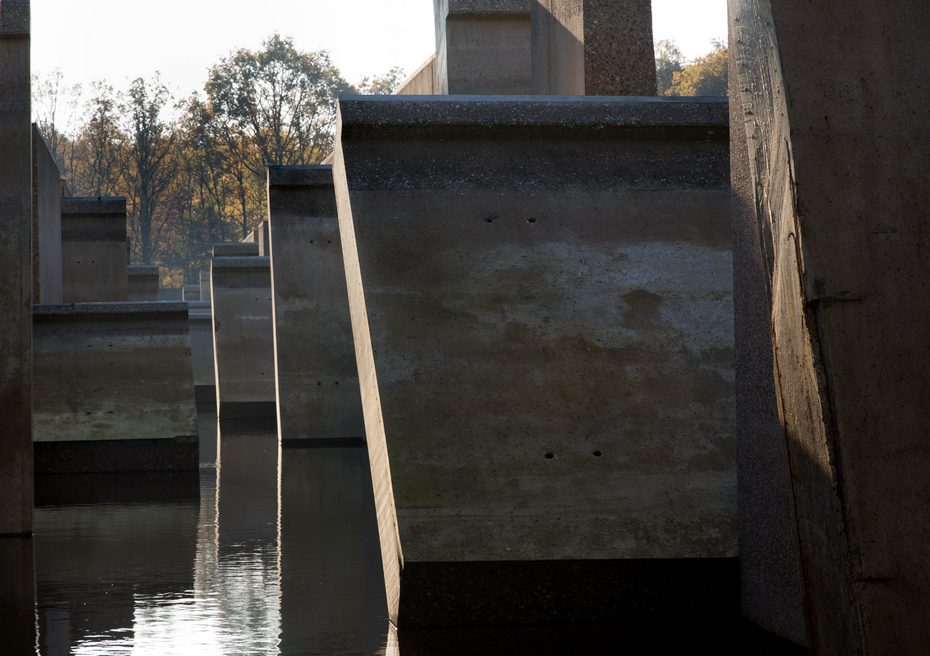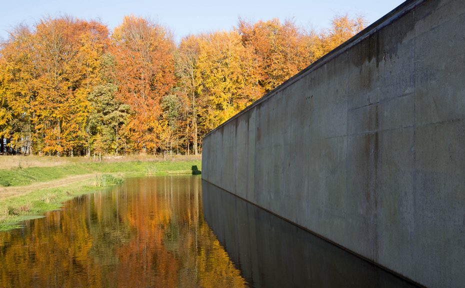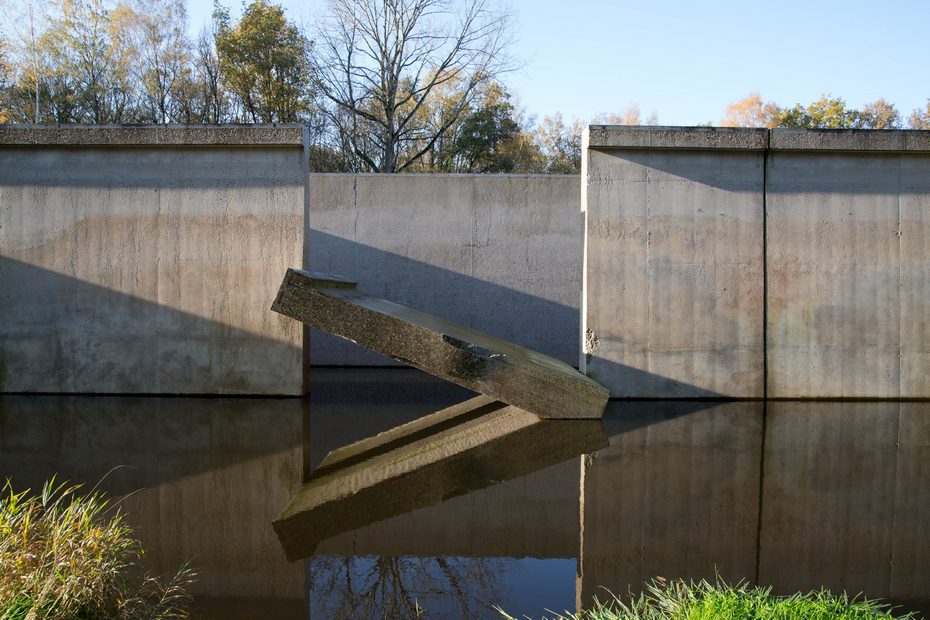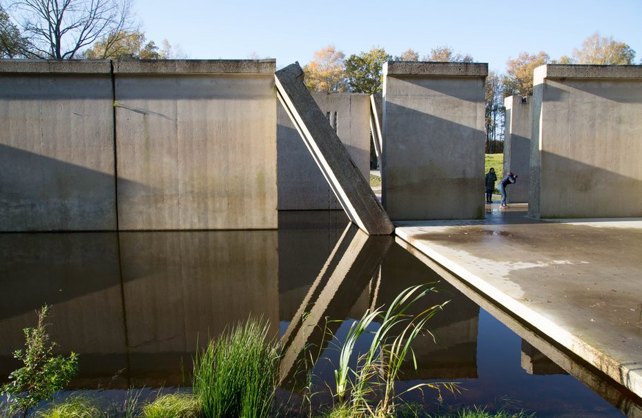 De Deltagoot, destijds boven het maaiveld gebouwd waarna het terrein met zand is opgehoogd, is uitgegraven zodat de volledige omvang van het bouwwerk ervaren wordt. Daarnaast staat de goot door de afgraving volledig in een watervlak. Uit de tachtig centimeter dikke wanden van de goot zijn enorme betonplaten gezaagd die vervolgens een kwartslag zijn gedraaid en gekanteld waarmee een ritme van vallende platen is gecreëerd.