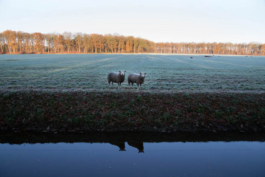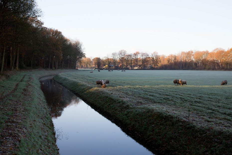 Vanaf dit punt is de Wheer ook beduidend breder en stroomt het water sneller. We volgen de Wheer langs de schapen en komen uit bij de Oldemarktseweg. Ik parkeerde mijn auto bij zwembad ‘t Tolhekke en wandelde vlak voor zonsondergang een klein stukje langs de Wheer.