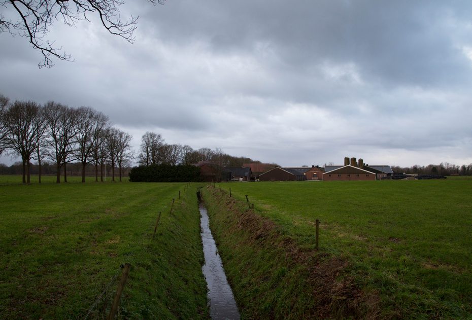 Vanaf De Pol gaan we naar buurtschap Marijenkampen. Ik stond op dit punt terwijl ik onderstaande foto maakte. De Wheer stroomt hier naar mij toe. Aan mijn linkerhand ligt de ijsbaan en daarnaast staat buurthuis ‘t Reunedal.