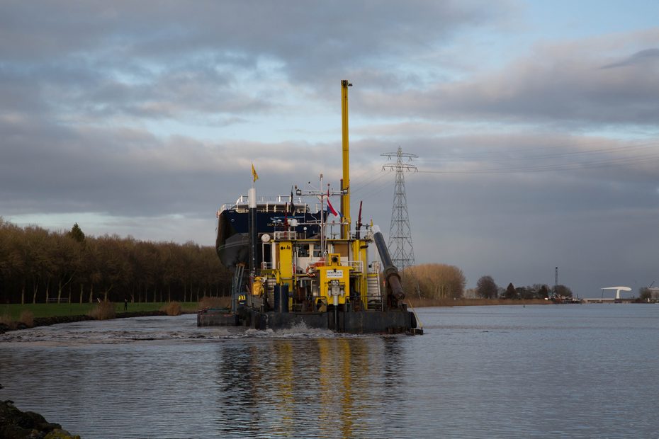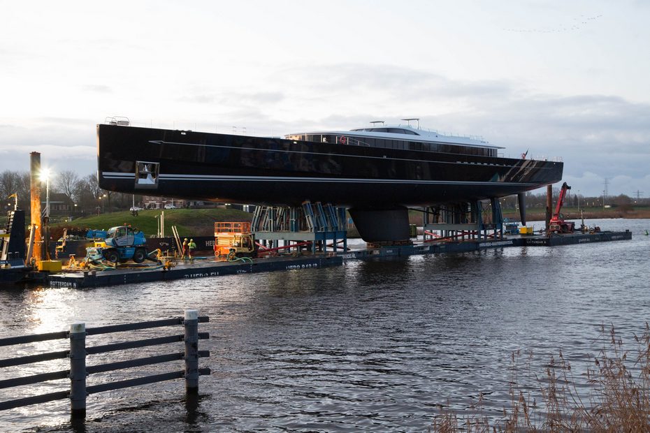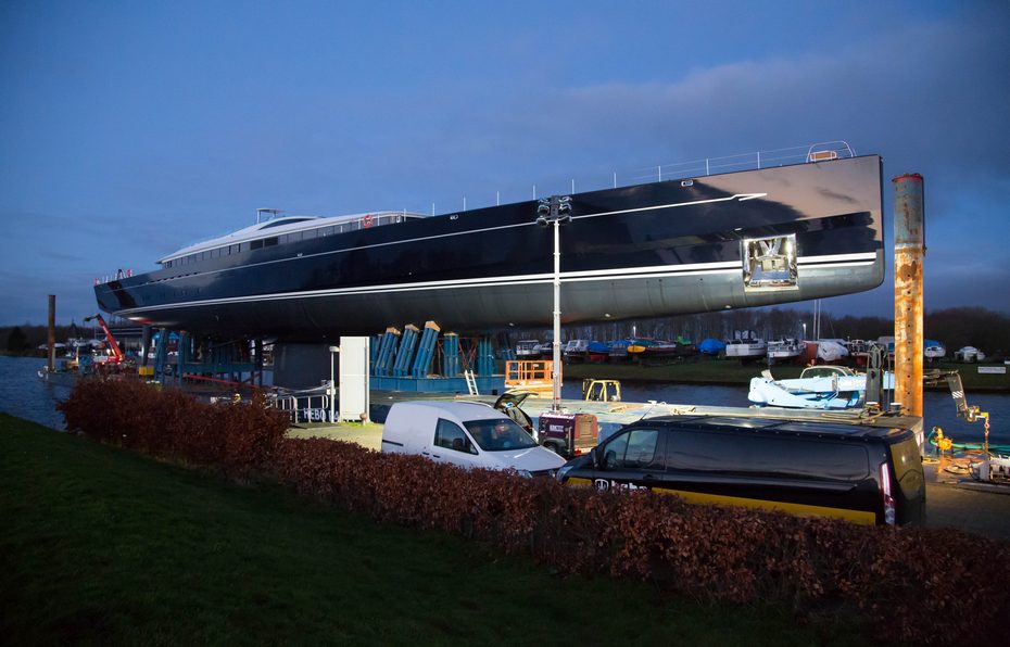 Op de pontons en op de sleepboten werd er hard gewerkt. Stabilisatiepontons werden losgekoppeld en aan de voor- en achterzijde van de hoofdpontons bevestigd. Hiervoor werden kranen gebruikt en dit alles moest uiteraard met beleid gebeuren. Je zou maar met de giek van de kraan tegen het jacht aanstoten. Verder werd er voortdurend ballastwater in en uit de pontons gepompt.