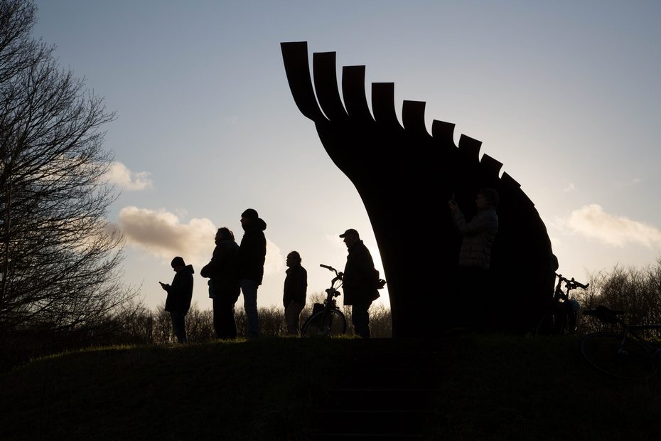 Inmiddels was de zon ondergegaan en werd het steeds kouder. Ik was vergeten mijn thermobroek aan te doen en het stilstaan maakte het er ook niet beter op. Ik besloot daarom in beweging te komen en wandelde over het pad aan de zuidoostkant van de brug. Op die manier kon ik de verrichtingen vanuit een andere hoek bekijken en vastleggen. De volle maan was een mooie aanvulling op deze bijzondere avond.