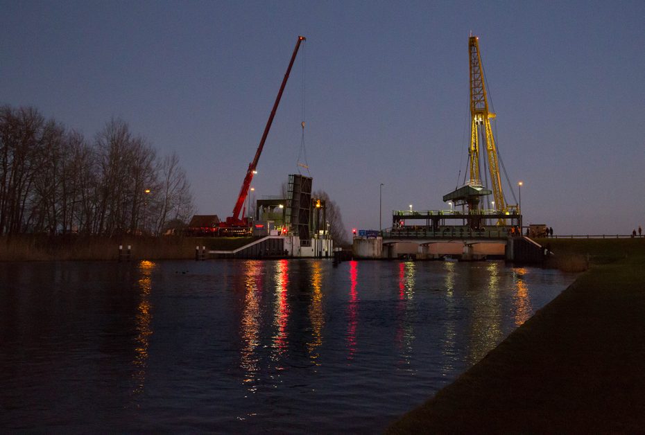 Het brugdeel werd op de gebruikelijke manier mechanisch naar boven ‘gedraaid’. Nadien werd met een lier door twee mannen het brugdeel nog verder rechtop gedraaid. Daarnaast trok de enorme hijskraan met behulp van de stalen balk het brugdeel verder naar achteren. Op die manier zou het superjacht ongehinderd de doorvaart kunnen maken.