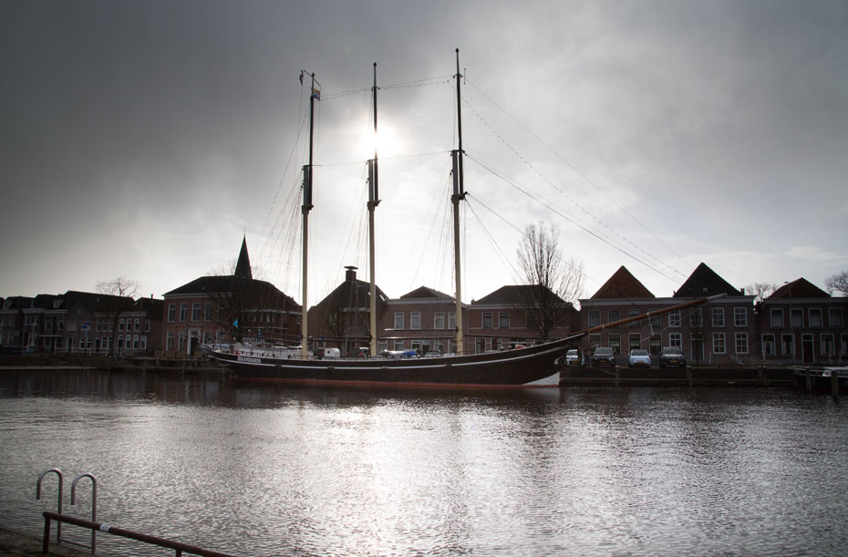 Via de dijk langs het Zwarte Water kwamen we uit op het industrieterrein in Genemuiden. Een groot industrieterrein waar we aanvankelijk verdwaalden. Genemuiden is bekend om zijn tapijtindustrie en om de productie van kunstgras. Na een omzwerving over het grote industrieterrein kwamen we uiteindelijk uit in het haventje van Genemuiden.