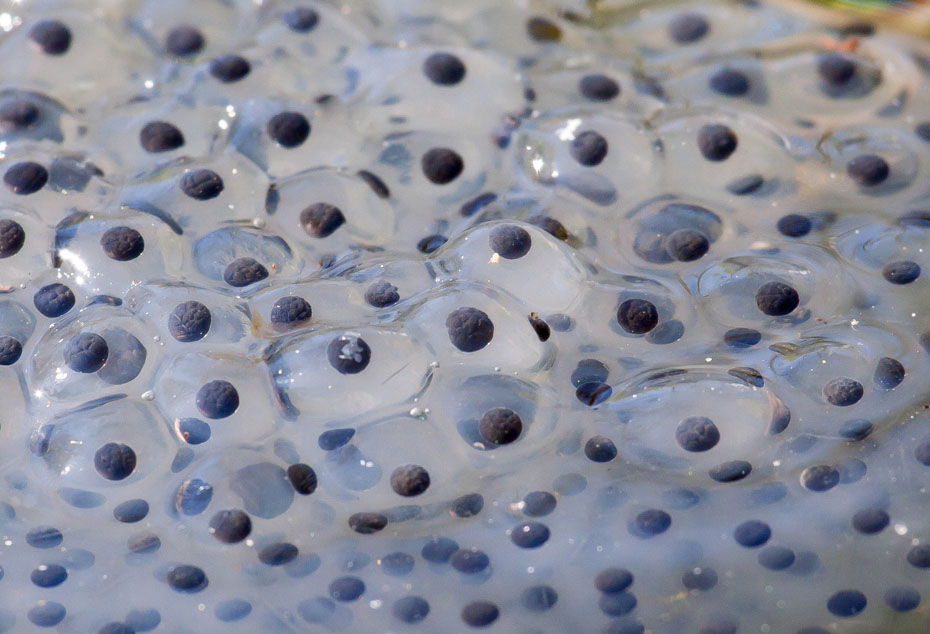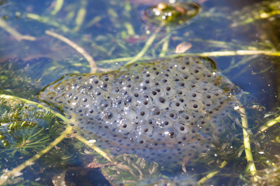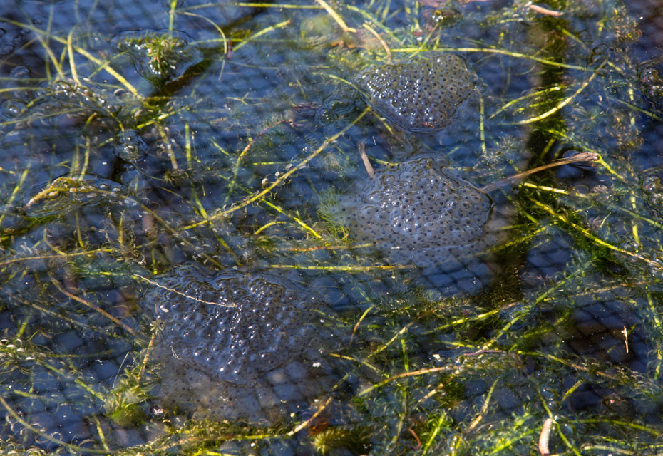 In onze vijver liggen sinds gisteren drie  hoopjes kikkerdril. Te schitteren in het lentezonnetje.