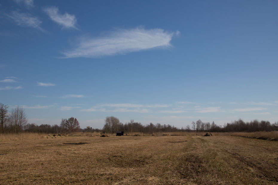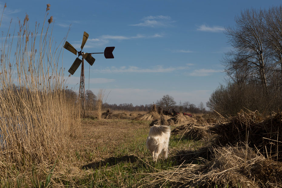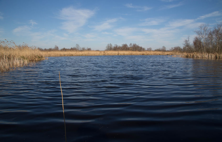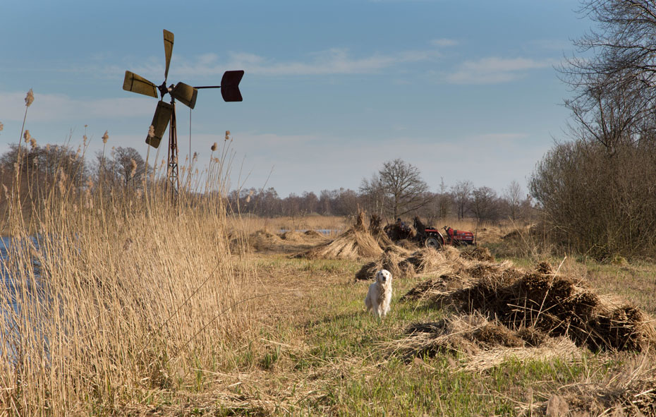 Op de prachtige lentedag waarop ik de bijen en de blauwe druifjes had vastgelegd reed ik ‘s middags naar het rietland van Klaas Jan. Dit rietland is gelegen tussen de buurtschappen Nederland en Kalenberg in natuurreservaat De Weerribben. Toen ik daar aankwam was Klaas Jan in geen velden of wegen te bekennen. Zijn auto stond er wel dus hij moest er wel zijn.