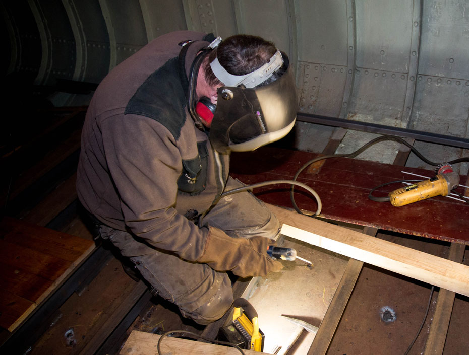 Bijna alle betimmering is verwijderd. Alle onderdelen worden bewaard en zoveel mogelijk hergebruikt. Alle oude verflagen zijn van het casco verwijderd en alle spanten zijn vervangen. Dit was een immense klus. Het is belangrijk werk waar je later niets van terugziet. Klik op de foto’s voor groot formaat.