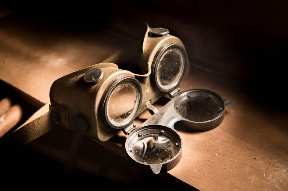 Het loodzware granieten aanrechtblad staat nu tijdelijk in het midden van het ruim. Het fungeert nu als werkblad voor het gereedschap en andere hulpmiddelen.