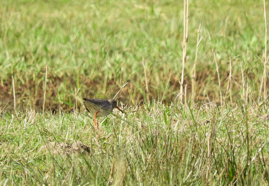 Nadat ik de grutto en de kievit had vastgelegd kwam er als kers op de taart ook nog een tureluur voorbij. De tureluur is een niet zo algemene weidevogel en staat op de rode lijst. De tureluur neemt de laatste 10 jaar als broedvogel af in aantal, met minder dan 5% per jaar. Ook de aantallen niet-broedende tureluurs nemen licht af. Bron is de site van de vogelbescherming.