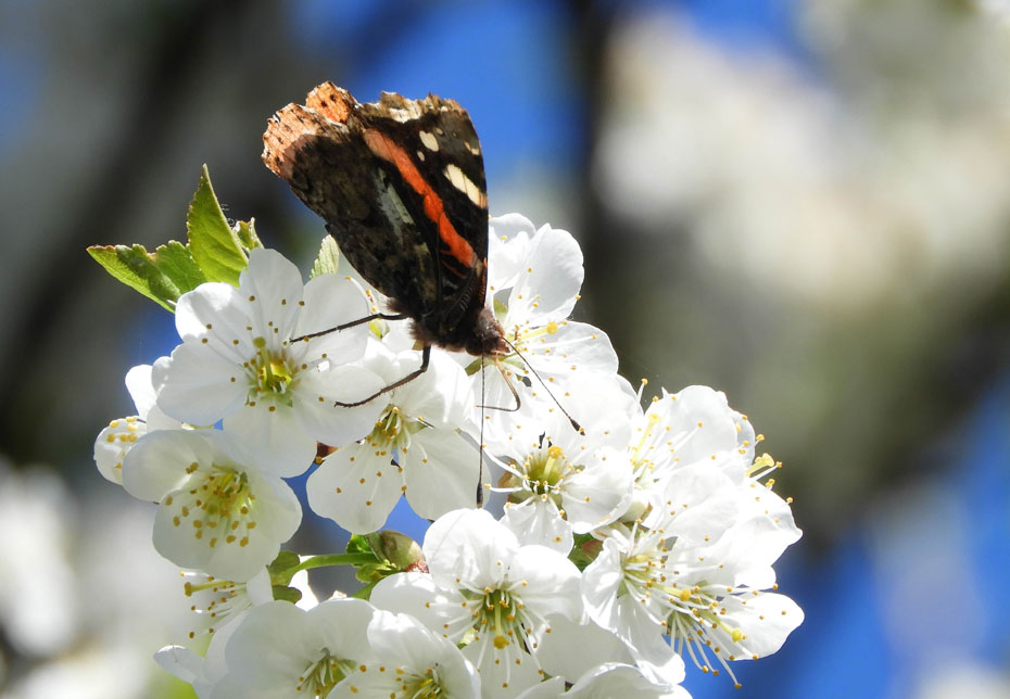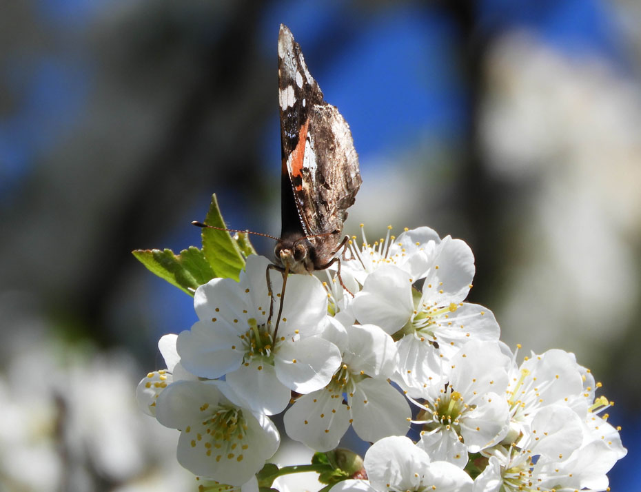 Het is echter de eerste keer dat ik een atalanta op de bloesem van de kersenboom zag.