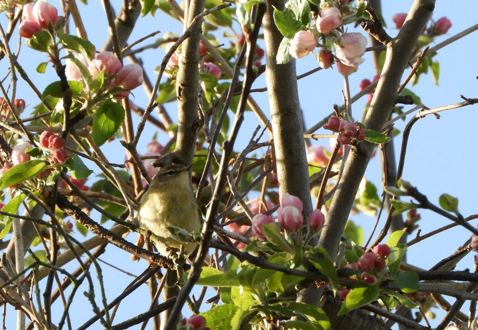 Gisteren liet ik hier diverse vogels tussen de bloesem zien. Er is echter in onze tuin nog een vogeltje die zich veelvuldig laat horen en zien en die gisteren nog geen plekje had gekregen op mijn weblog en dat is de tjiftjaf. Ook de tjiftjaf is op zoek naar insecten in onze tuin. Die zijn er genoeg als je maar wel de goede kant opkijkt…