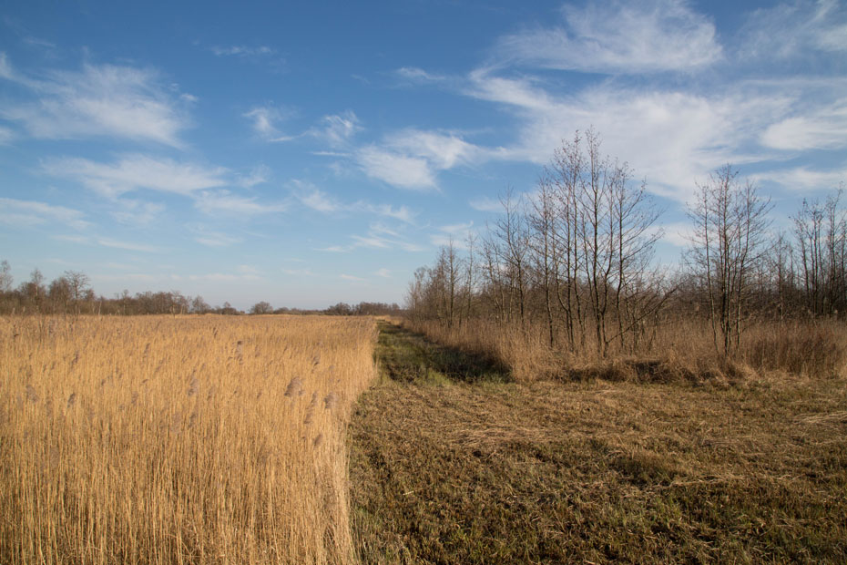 Nadat ik het kammen van riet had vastgelegd wandelde ik verder door het rietland.