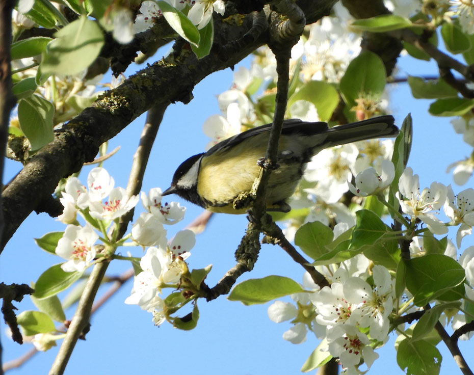 Vogels tussen de bloesem