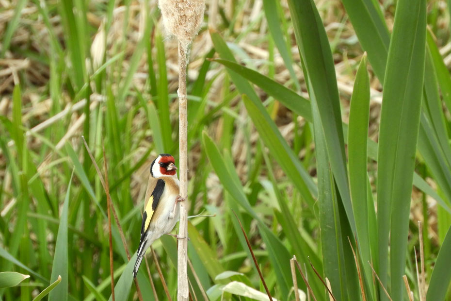 Tijdens het fotograferen bij de Twitterhut kreeg ik nog een buitenkansje. Een putter streek neer op een uitgebloeide lisdodde en bleef daar een tijdje voor mij poseren.
