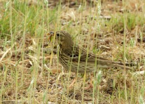 Boompieper met snavel vol voedsel