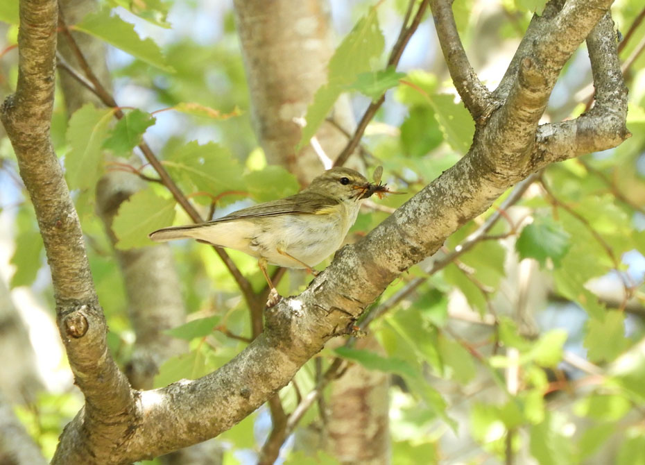 Het vogeltje had een snavel vol met voedsel. Pas thuis op de computer leerde ik dat het een fitis was. De fitis vloog met de snavel vol met voedsel van de ene tak naar de andere tak. De fitis wilde de jongen voeren, maar vermoedelijk stond ik in de weg. Nadat ik de fitis in diverse poses had vastgelegd besloot ik het vogeltje niet langer te ‘plagen’ en fietste ik verder.