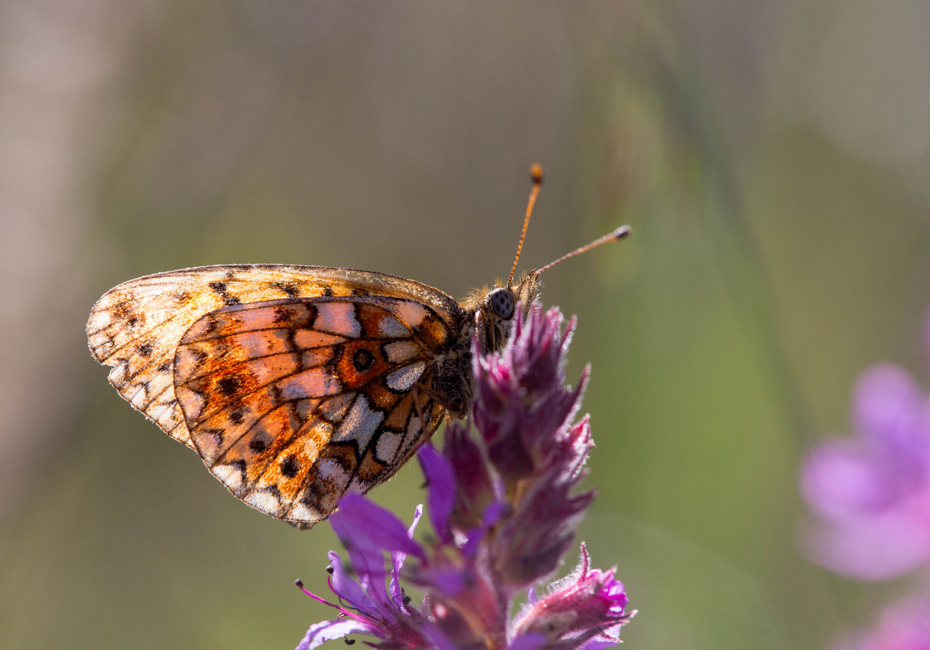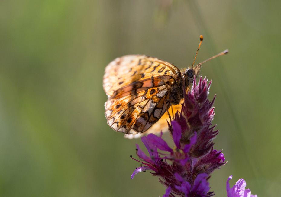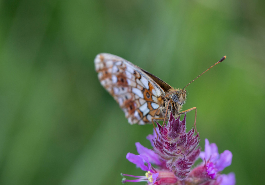 Omdat de vlinder keurig bleef zitten heb ik gespeeld met de scherpte/diepte. Bij onderstaande foto heb ik scherpgesteld op de rechter antenne.