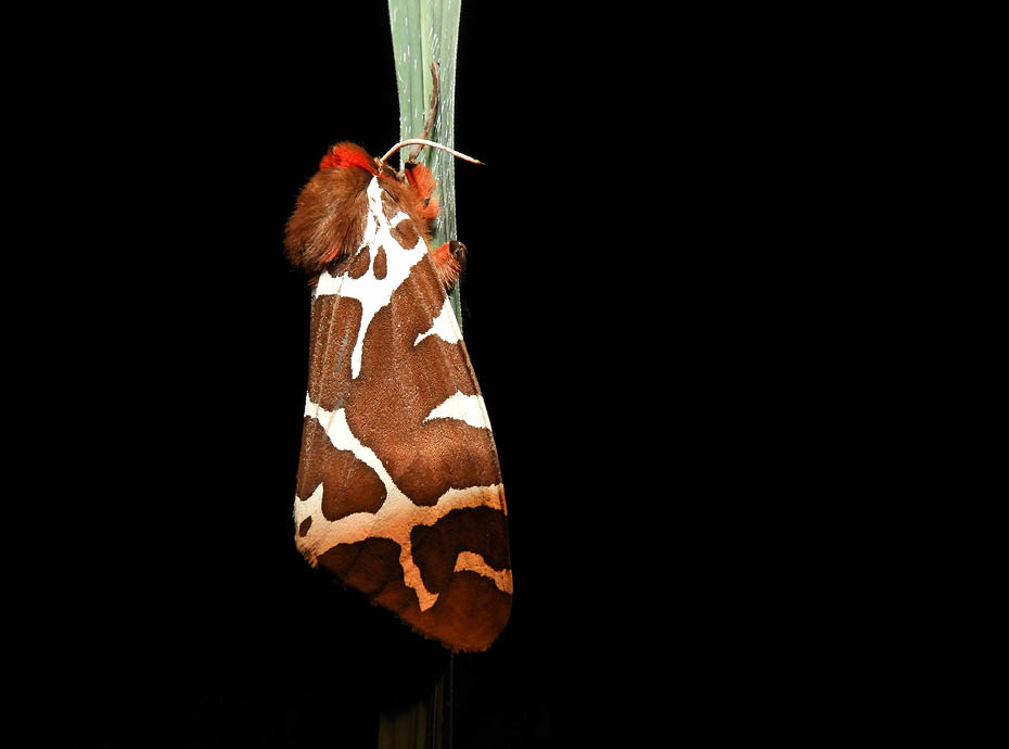 Tijdens de tropische dagen zat ik iedere avond tot laat buiten. Ondanks dat ik overdag aan het werk was gaven mij deze avonden het ultieme vakantiegevoel. Op een avond kreeg ik gezelschap van een opvallende en mooie vlinder. De grote beervlinder. De vlinder werd aangetrokken door een felle buitenlamp.
