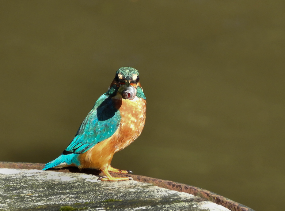 Even later had ik het geluk dat de ijsvogel nog een keer op het remmingswerk ging zitten. Deze drie foto’s maakte ik met mijn Nikon bridgecamera met sterke zoom. Kroppen was niet nodig.