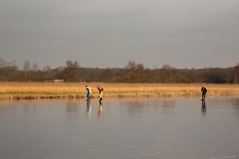 In de naam van deze vogel zit het woordje ‘ijs’. IJs en ijsvogel hebben echter niets met elkaar te maken of het moet zijn dat ijs de grootste vijand is van de ijsvogel. Onderstaande foto maakte ik in februari 2018. Op de achtergrond is de vogelkijkhut te zien waar ik bovenstaande serie maakte. Mochten we weer zo’n winter krijgen als in februari/maart 2018 dan holt de populatie ijsvogels snel achteruit.