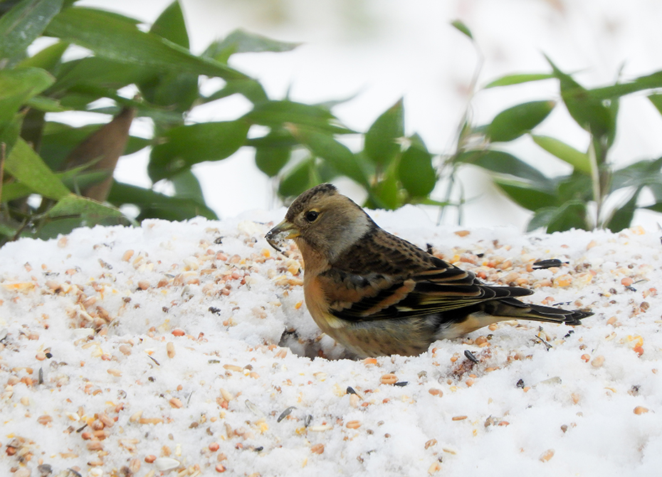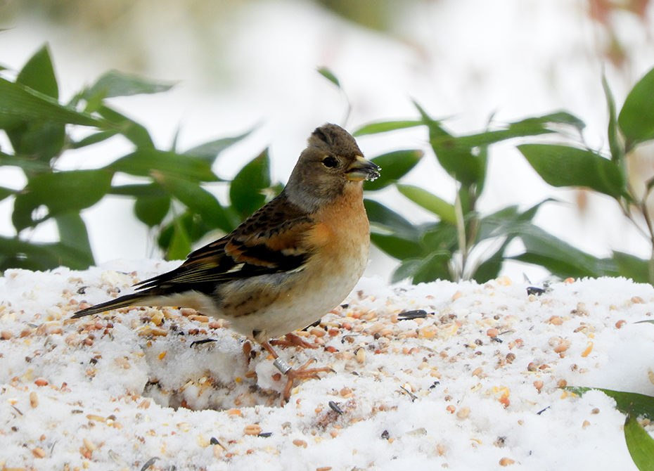 Tijdens de periode van sneeuw en vorst hebben we goed voor de vogels gezorgd. Het was een feest om te zien hoe de vogels zich tegoed deden aan het vogelzaad. In die tijd waren de vinken, de mussen en de merels het beste vertegenwoordigd. Andere soorten zoals de koolmees, de pimpelmees, de tortelduif, de groene specht, het roodborstje, de kraai, de ekster, de spreeuw waren minder aanwezig. Zo nu en dan kwam er zelf een sperwer kijken of er nog wat te halen viel.