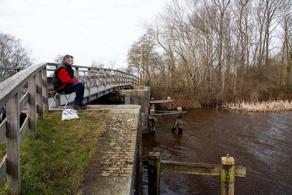 Jan had zijn klapstoeltje meegenomen en koos een plekje op het sluisje. Vanaf dit punt had hij mooi zicht over het water en op de eventuele aanvliegroute van de ijsvogel.
