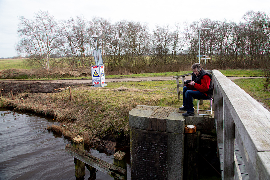 Jan had zijn klapstoeltje meegenomen en koos een plekje op het sluisje. Vanaf dit punt had hij mooi zicht over het water en op de eventuele aanvliegroute van de ijsvogel.