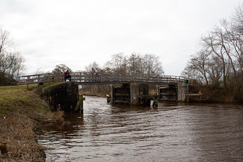 Vanaf de oever maakte ik een foto van Jan op het sluisje.