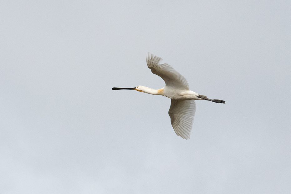 Na lange tijd wachten had ik geluk. Een lepelaar steeg op vanaf het nest en vloog voor mij langs.