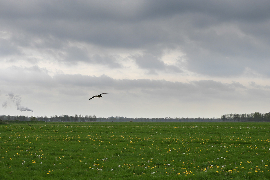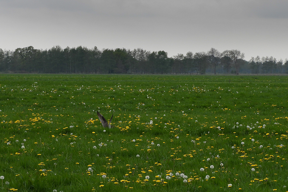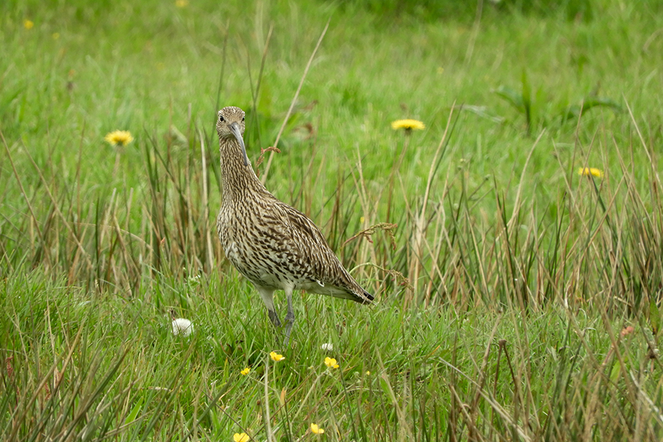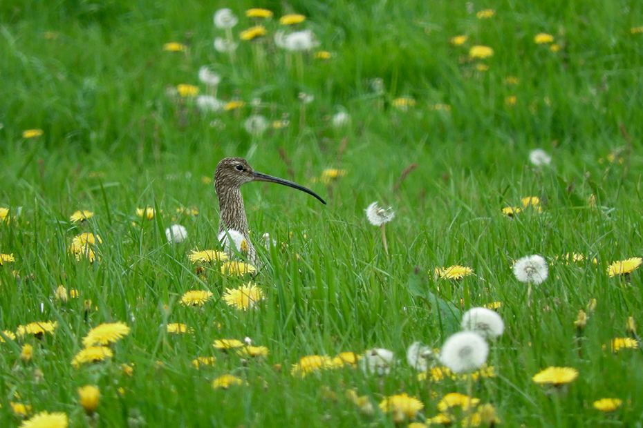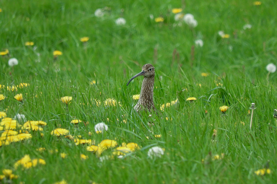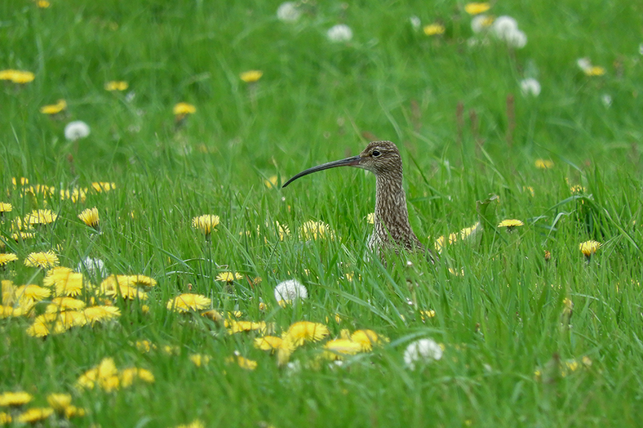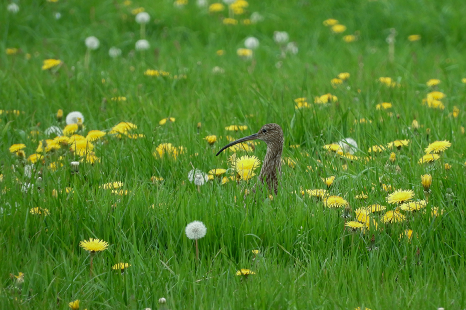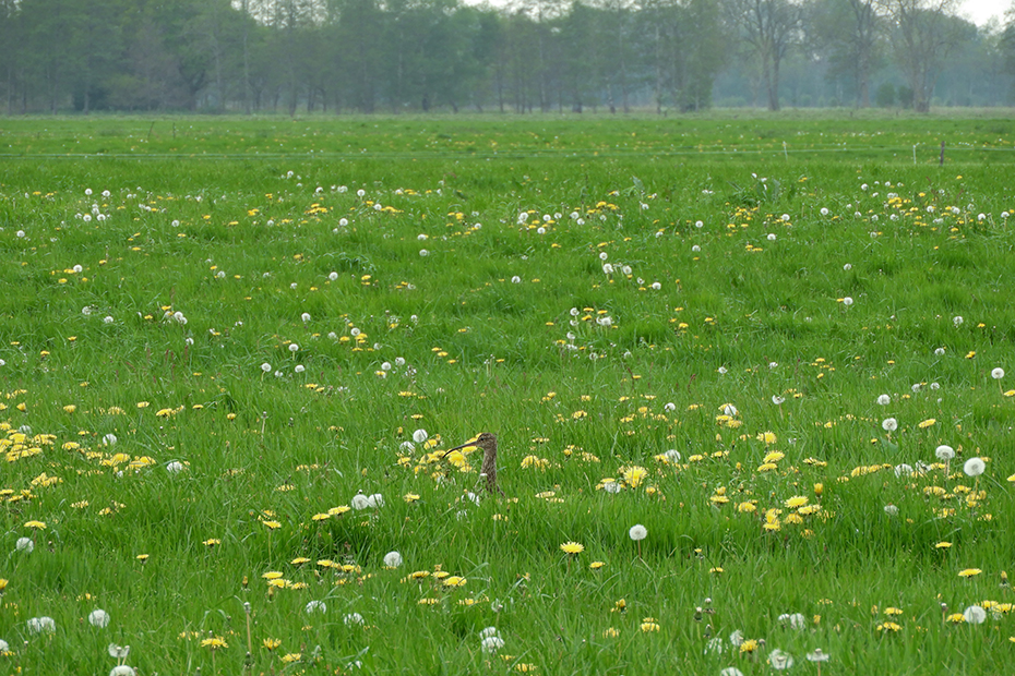 Het zou best eens kunnen dat er in dat lange gras de jongen van deze wulp liepen.