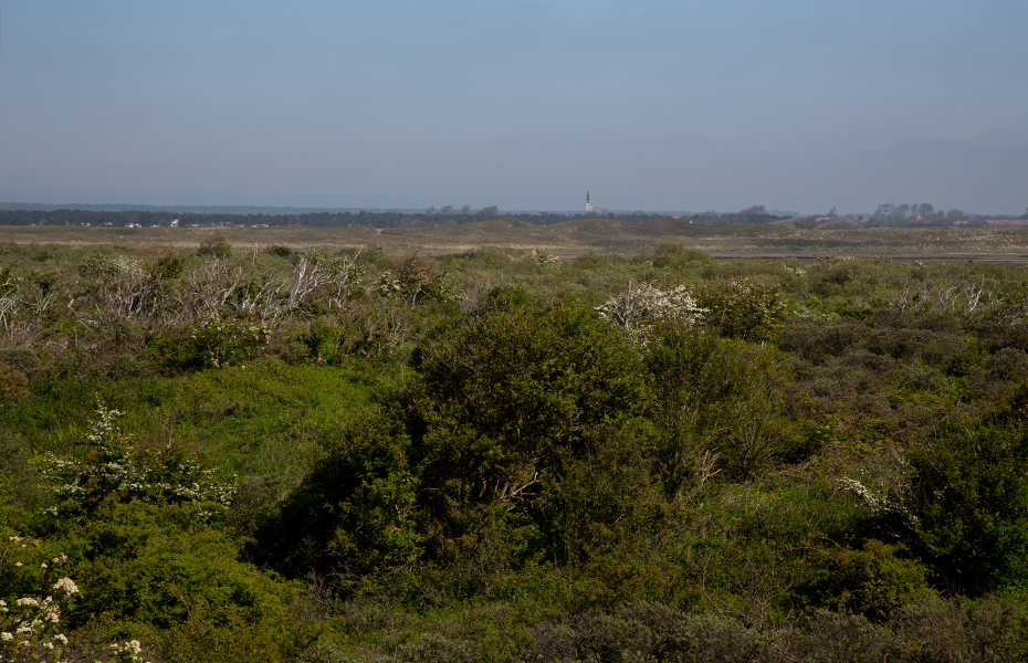 Vanaf het uitkijkpunt zicht op het kerkje van Den Hoorn.