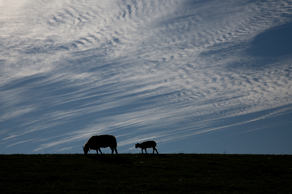 Boven de Waddendijk op Texel hadden de wolken een mooi patroon gevormd. Texel is bekend om de Texelse schapen. Een schaap en een lammetje mogen dus niet ontbreken in deze fotoserie over onze vakantie op Texel.