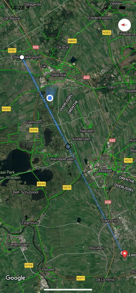 Bert stuurde, op mijn verzoek, een kaartje en foto’s. Het kaartje laat de route zien waar ze overheen zijn gevaren.
