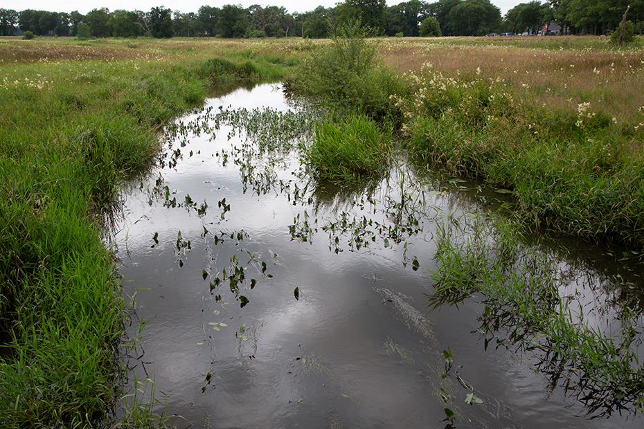 Vanaf het bruggetje heb je mooi zich op het Oudemolensche Diep. Het is een stroompje wat bij uitstek geschikt is voor de weidebeekjuffer. Er vlogen er dan ook tientallen.