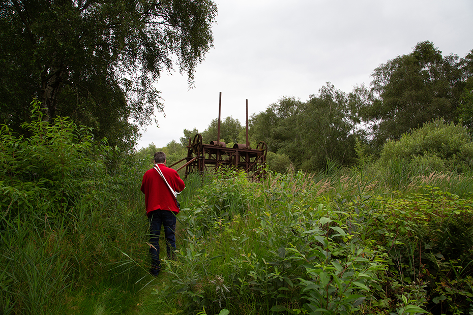 Terwijl ik bezig was met de serie over het turf en veen winnen in De Deelen las ik dat er ergens in dat gebied een machine is die daarvoor gebruikt werd. Een paar dagen later appte Jan mij dat hij er achter was gekomen waar die machine, de baggelmachine staat. Daarbij kwam de vraag of ik zin had om hem te vergezellen naar de baggelmachine. Daar was ik zeker voor in en zo gebeurde het dat we samen op stap gingen. Omdat Jan niet ver kan lopen had hij een route gezocht waarbij de wandeling zo kort mogelijk zou zijn. We moesten daarbij met een pontje oversteken.