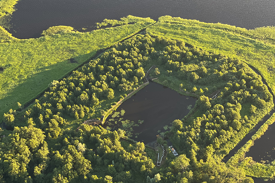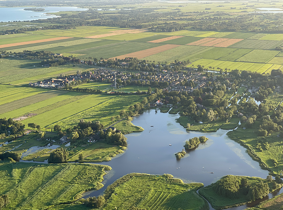 Op de foto’s is te zien dat we in een waterrijk gebied wonen en dat hier nog volop ruimte is. Op de derde foto zie je de eendenkooi in Giethoorn. Je kunt goed de vier vangarmen in de hoeken van de plas zien.