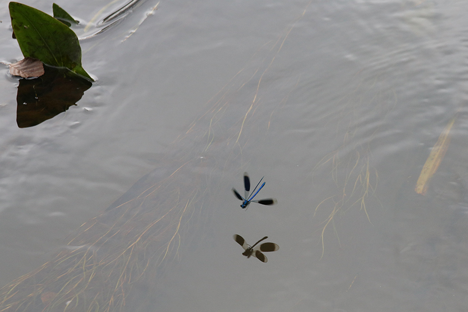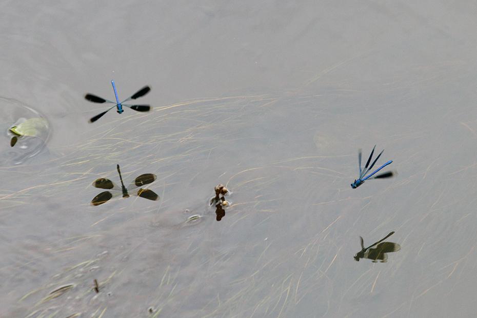 Met name mannetjes fladderen boven het wateroppervlak.