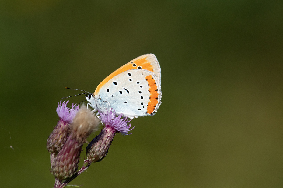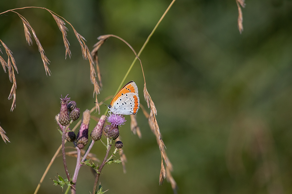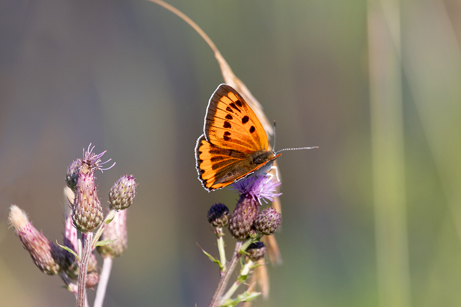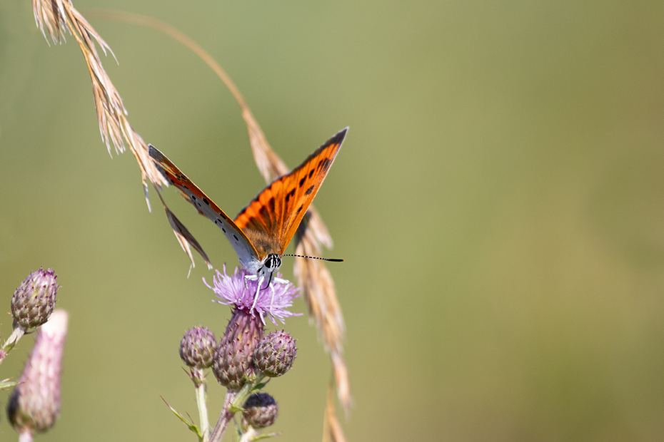 De grote vuurvlinder is een vlinder die alleen voorkomt in Noordwest Overijssel en in het zuiden van Fryslân. De grote vuurvlinder staat op de rode lijst als ernstig bedreigd. Ieder jaar probeer ik de grote vuurvlinder een keer te fotograferen. Vorig jaar is het niet gelukt. Vorige week ging ik weer op stap in De Weerribben en zocht ik lang naar de unieke vlinder. Na een tijd gaf ik de moed op en reed in de auto weer terug naar huis. Halverwege het smalle weggetje stond een man te fotograferen. Ik reed stapvoets en met de ramen open. De man vroeg mij of ik toevallig op zoek was naar de grote vuurvlinder. Hij wees naar de vlinder op de kale jonker met de woorden: ‘Daar zit er één’.